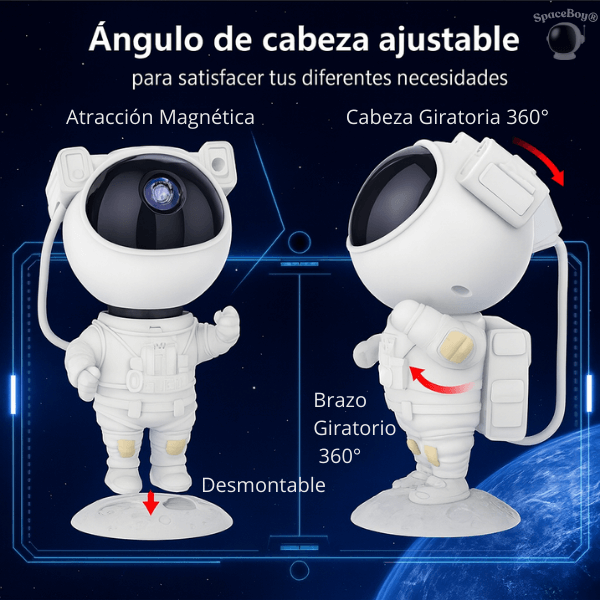 ✔️ Diseño ajustable: Cabeza magnética 360° · base tipo luna · funcionamiento silencioso para dormir.